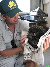Several weeks later, he appeared hosting his first-ever segment of WILD! PGA, where he suddenly was dressed like the Crocodile Hunter in khaki safari clothes and wearing an outbacker hat on top of his mask. He essentially did the promo he was instructed to do prior to his Helm Konrad match, where he opened up a door to try to find the MIA wrestler, only to find green-screened footage of the Berlin Wall coming down. After that, he also ran into Ari Richter, in which they got into a scuffle backstage that also included the first appearance of Andrew's new puppet sidekick, Mikey the Echidna. Before settling into a weekly spot on Bear Ordered Wrestling, the WILD! PGA roving camera was used as a device to catch otherwise unexplainable "secret" meetings backstage. It was at this time that Andrew was finally allowed to remove his mask, thus making him more of a koala bear enthusiast as opposed to an actual koala.