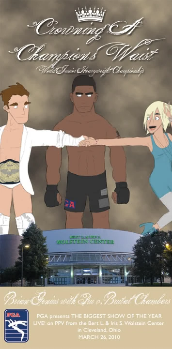 Crowning a Champion's Waist 2010 was a PGA pay-per-view that emanated from the Bert L. & Iris S. Wolstein Center in Cleveland, Ohio on March 26, 2010. The show was billed as the biggest event in Pro Graps history. That night Brutal Chambers defeated Brian Genius to end a year long rivalry and King Falcon handed Lester Balaam Jackson only his second pinfall loss. Special guests in attendance included AAPW President Alvin "Theodore" Shohei, head of Asociación de Panamanian Grappling "Panamanian Assassin" Manuel Obando, Liga de Lucha Libre Vice Owner Oscar Sanchez, and PGA founder Balk Ruby.